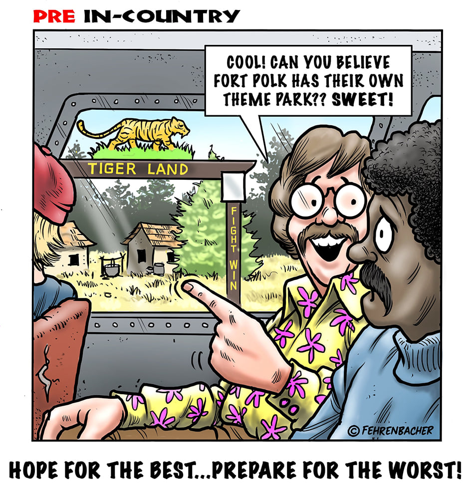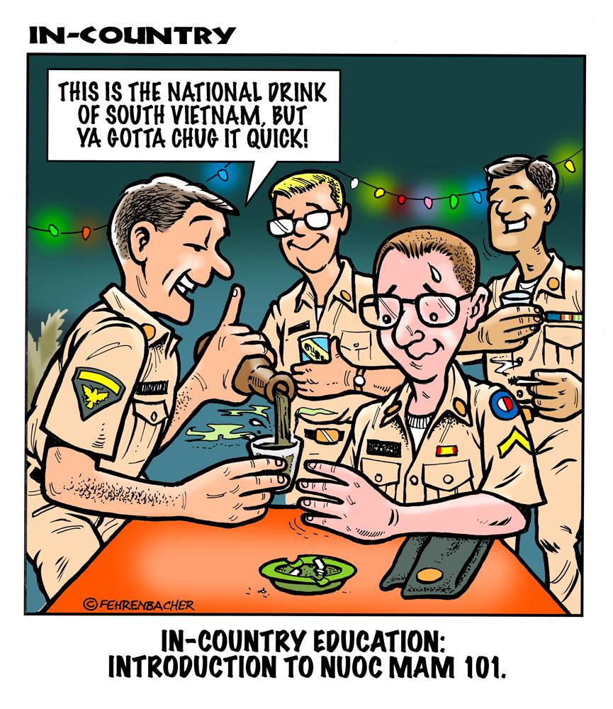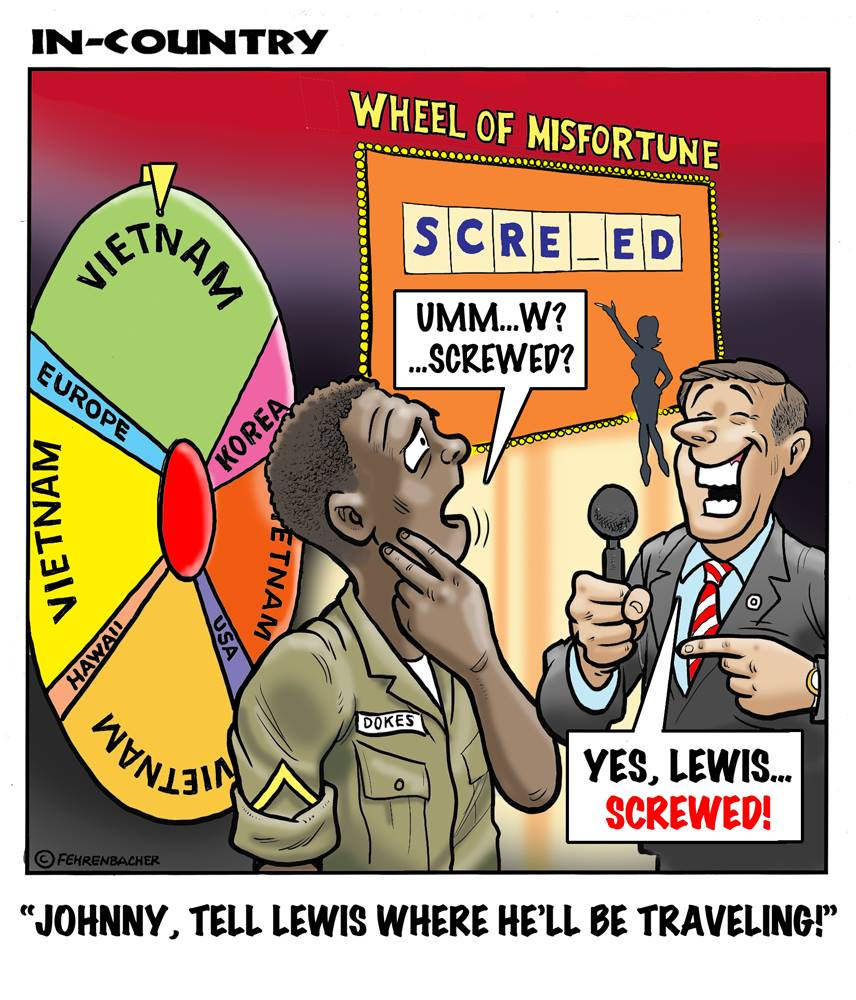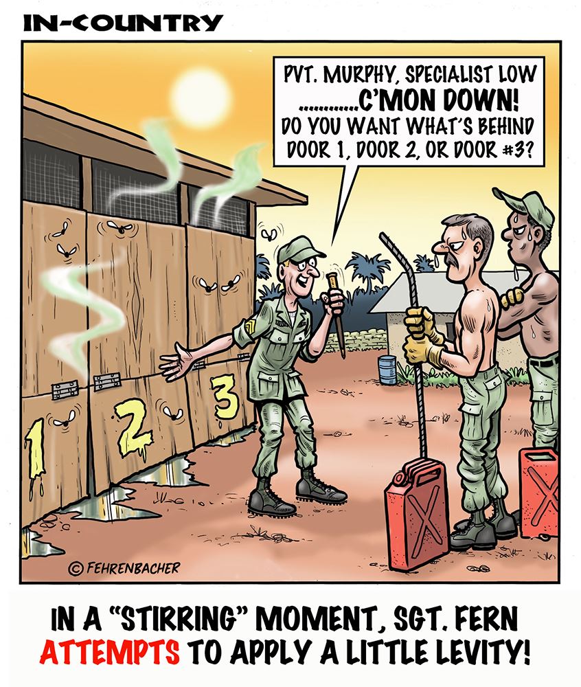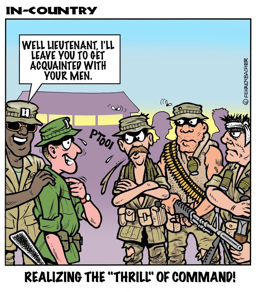 Phil enlisted in the Army in 1965 where he served for years in Vietnam. He became a graphic designer and has worked for the state of Oregon for 26 years. He retired in 2003 and started the Cartoon "In-Country". The cartoons reflect his experiences during his tour of duty in South Vietnam.