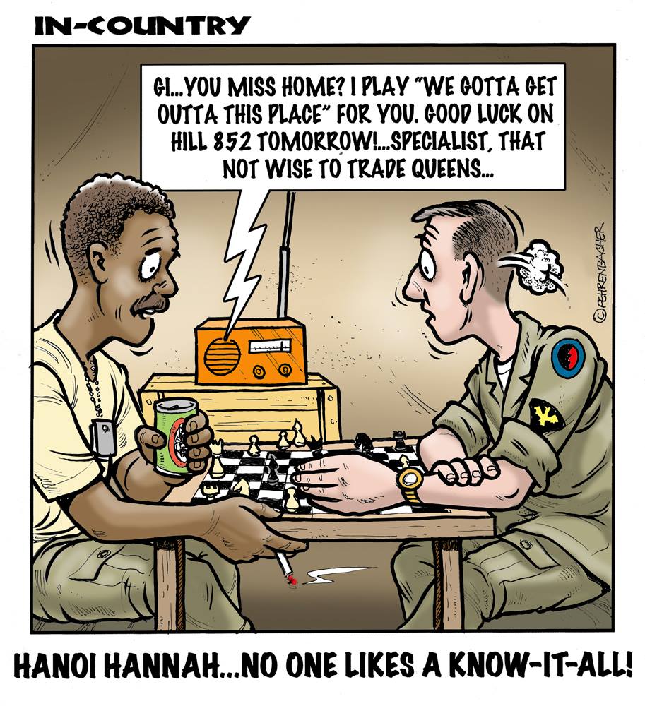 Phil enlisted in the Army in 1965 where he served for years in Vietnam. He became a graphic designer and has worked for the state of Oregon for 26 years. He retired in 2003 and started the Cartoon "In-Country". The cartoons reflect his experiences during his tour of duty in South Vietnam.